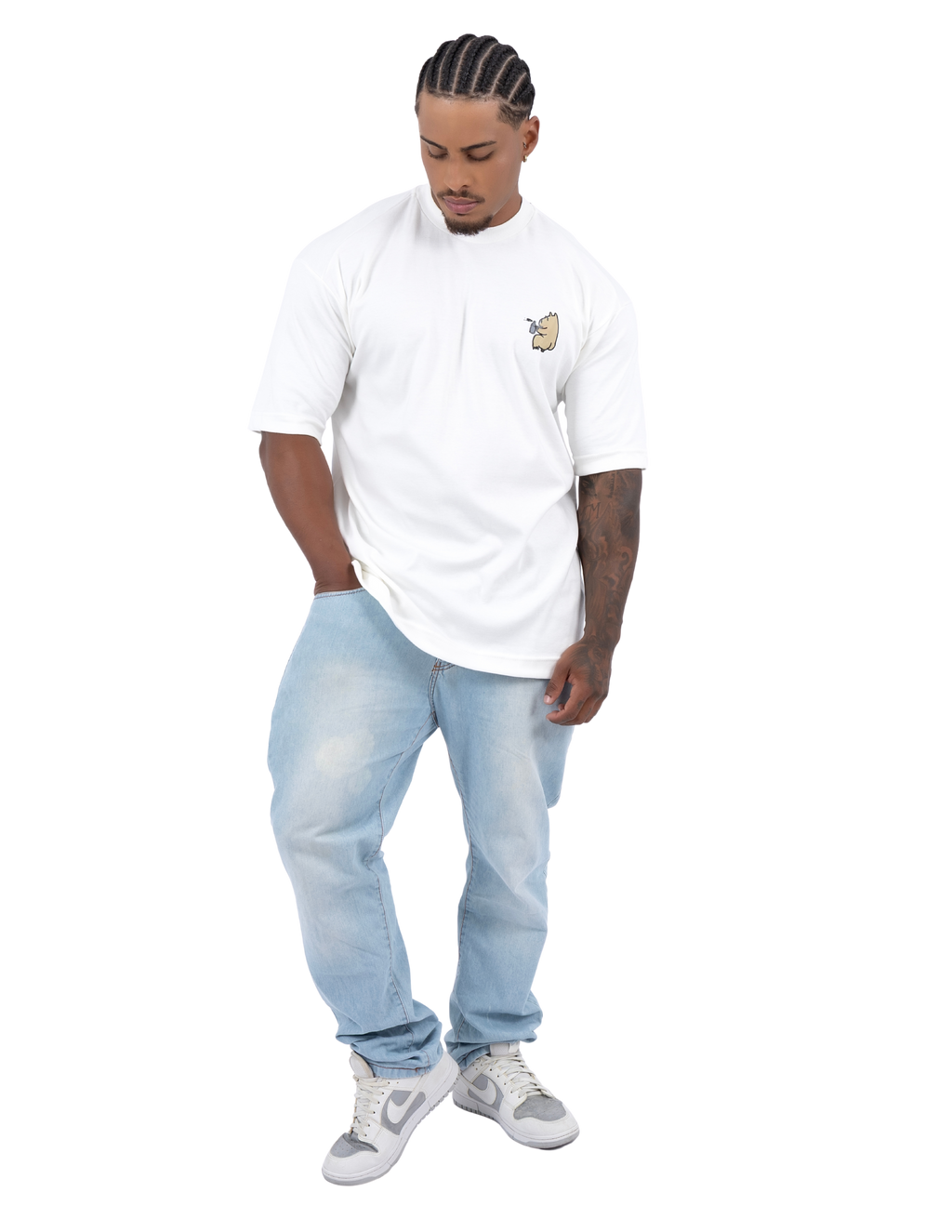 Produzida em algodão premium de alta gramatura, oferece caimento solto, confortável e resistente, perfeita para compor looks streetwear modernos.