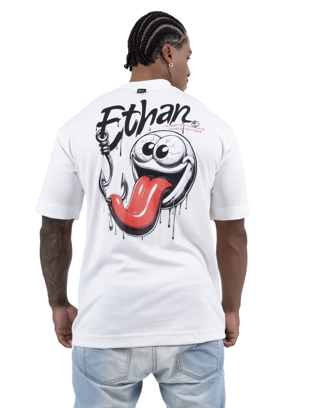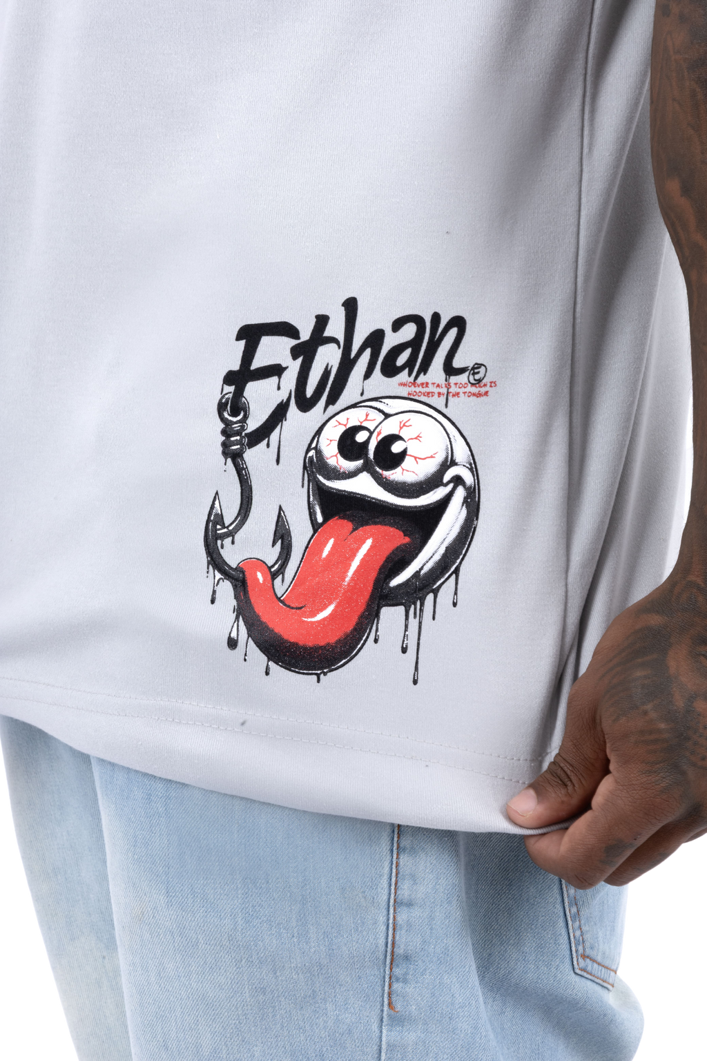 Camiseta oversized masculina em algodão premium, com estampa exclusiva Ethan na frente e nas costas. Modelagem ampla e confortável, ideal para compor looks casuais e streetwear.